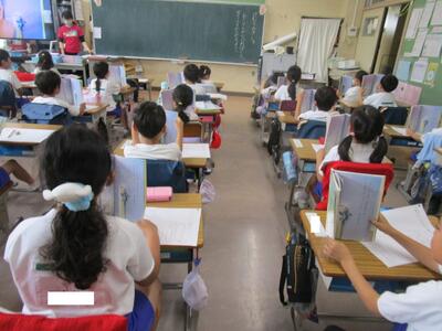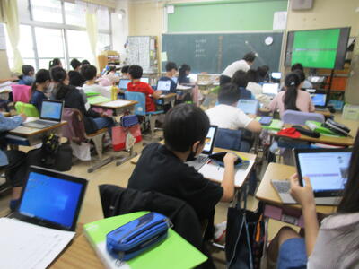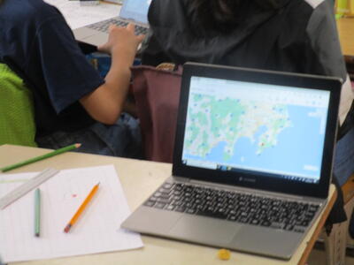 5年生は、7月に行く宿泊学習に向けての、調べ学習が始まりました。大山千枚田や岩井海岸、房州うちわなどについて、調べていました。事前に学習してから体験すると、学びの質が変わりますね。