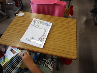 1年生、国語「けむりのきしゃ」の学習を進めながら書いたワークシートを1冊の本に、まとめました。形に残るとうれしいですね。別のクラスは、カタカナの学習をしていました。「モ」の付く言葉は?と先生が聞くと、子供が「モノレール」「モルモット」など、言葉を発表していました。