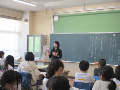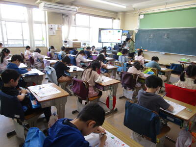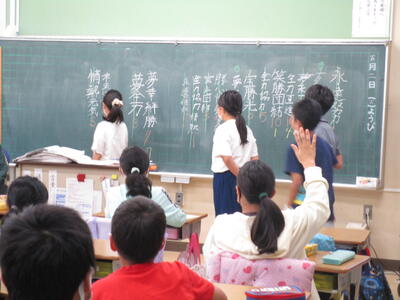 4年生は、国語で「ぴったりの言葉を見つけよう」という学習に取り組んでいました。「うれしい」や「悲しい」を別の言葉で言い換える学習です。「悲しいという言葉を言い換えるとどんな言葉がありますか」の教師の問いに子供たちは「くずれ落ちる」「最悪な気持ち」「顔が暗い」「肩を落とす」・・・などたくさんの言葉を発表していました。作文を書く時だけでなく、短歌や俳句の学習でも生かしていけそうですね。