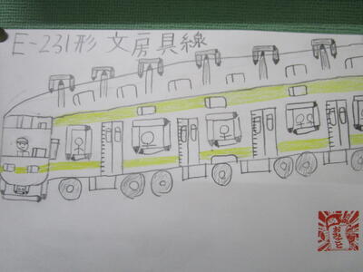 5年生、図工の「組み合わせて大変身」の作品が、廊下に掲示されています。これは、身近な文房具を組み合わせて、いろいろなものを表現した作品です。よく見ると、定規や分度器、ハサミや消しゴム等々、様々な文房具が描かれています。子どものアイディアは、本当に豊かですね。