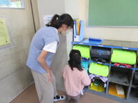 1年生、登校したら自分で朝の支度をしました。昨日担任の先生から教わったことを基に、机の中に物を入れたり、ランドセルをロッカーに入れたりしました。6年生の児童が2,3名、1年生の教室でお手伝いをしていました。声をかけながら、見守っている様子は微笑ましかったです。朝の支度が終わるときちんと席に座って待つこともできました。