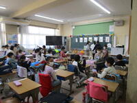 5年生は、今日から教科担任制の授業が始まりました。学年で、理科・社会・図工の授業は学年の教科担当の先生が授業を担当します。今日は第1回目のため、担当の教員の自己紹介や教科の持ち物や進め方について、子供たちと確認していました。5時間目には、学年合同体育で、9チームに別れてリレーをしていました。子ども達も盛り上がっていました。