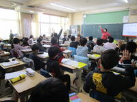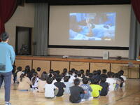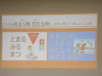 1年生と4年生、交通安全教室が体育館で行われました。1年生は、安全な歩き方、4年生は自転車の乗り方を中心に話を聞きました。1年生は、飛び出すことの危険性や大きな車の死角を学んだあと、実際に横断歩道を渡る練習を行いました。4年生は、スピードを出して自転車に乗っていた児童が高齢者にぶつかり、高齢者が入院するという話を画像で見た後、自転車の安全な乗り方を学びました。今日、学んだことを生活に生かして、安全に過ごしてほしいと思います。