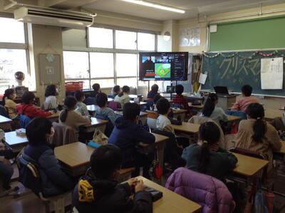 今日は、2022年最後の登校日で、明日から冬休みが始まります。朝は、全学級をオンラインでつないで「冬休みを迎える会」を行いました。