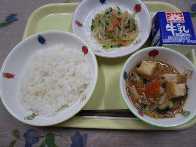 牛乳 ご飯 かじょう豆腐 春雨サラダ