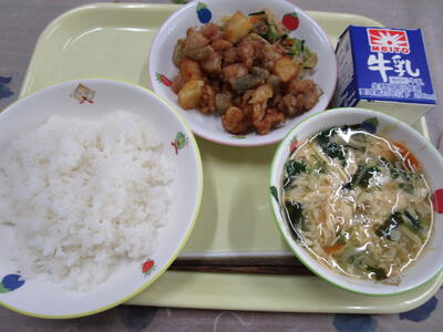 〇今日の献立は「鶏肉とジャガイモのにもの」のジャガイモを里芋に変更しています。