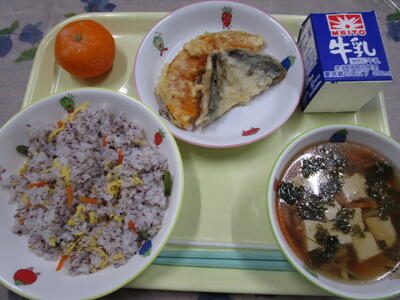 牛乳 ご飯 いわしのかば焼き 磯香和え かきたま汁