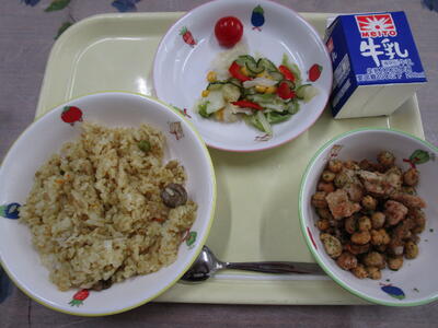 牛乳 麦ごはん ツナコーンカレー こなつ