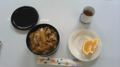 お昼は、各民宿で、牛丼とオレンジをいただきました。