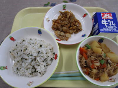 牛乳 ★わかめご飯 肉じゃが ★ビーンズごぼう