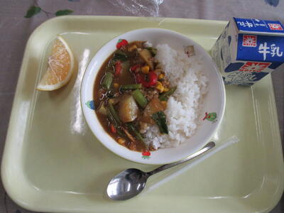 牛乳 麦ごはん ツナコーンカレー こなつ