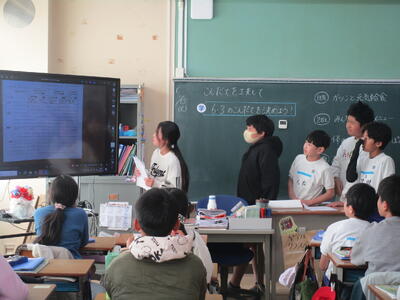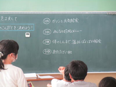 6年生の家庭科の授業です。今日は班ごとにたてた献立を発表していました。各班テーマを決めていましたが、季節を意識した体が温まるメニューや、みんなと楽しむためのメニューなどしっかりと理由も考えていました。栄養のバランスも忘れてはいけません、健康を意識した食材を選んでいました。全部の班の発表が終わったら、この中で1つ、実際に給食の献立として登場します。各クラスどの献立が選ばれるのか、楽しみですね。