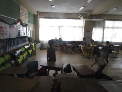 6月20日に行われる防犯避難訓練のための練習として、不審者を教室に侵入させないためにバリケードを作ったり、女性教員のクラスへ移動したりしました。1年生の様子を見に行くと、なぜ訓練をやるのか、どんな風に行動するといいのかを丁寧に事前指導していました。放送があると、どの学年も教室に鍵を閉め、バリケードを作り、息をひそめて、身を守っていました。男性教員は、不審者対応のため、さす股をもって、現場に集合し、さす股の使い方等の確認をしていました。