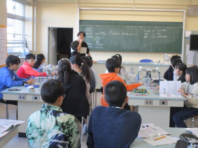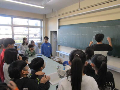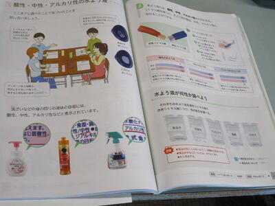 6年生の理科の学習の様子です。水溶液の性質について調べますが、まずは先生の教示を見ました。この後、予想をたて、確かめていきます。