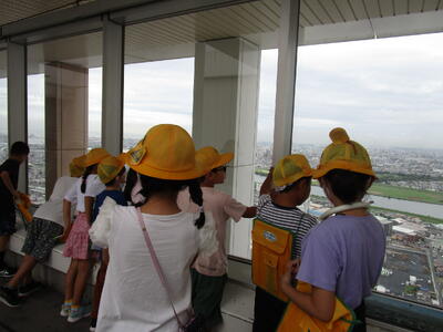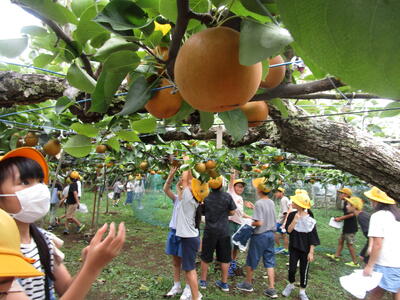3年生が市川探検隊になって校外学習で市内見学に出かけました。バスの車窓から市役所ややぶしらずを見てアイリンクタウンの展望施設から市内全域を見渡しました。市川市動物園に行き、お昼を食べて、動物を見た後、近くの梨園で梨の話を聞いて、梨もぎをしました。雨模様の予報でしたが、ほとんど雨はふらず、小雨がぱらついた時間もありましたが、全行程をしっかりとできました。