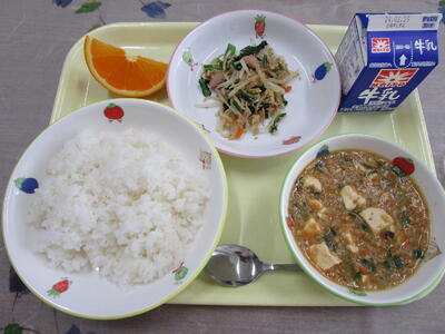 牛乳 ご飯 麻婆豆腐 ツナ和え 清美オレンジ