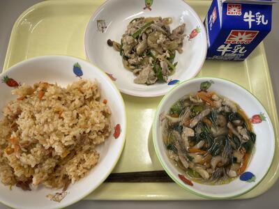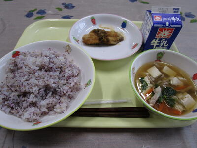 牛乳 ゆかりご飯 あじのごま酢ソースかけ 沢煮椀