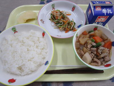 牛乳 ごはん 大根と鶏肉の煮物 ゴマ酢和え リンゴ