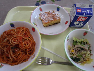 牛乳 ナポリタン キノコのソテー プラム入りケーキ