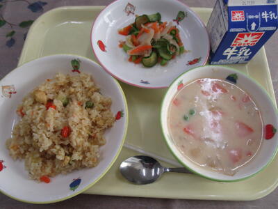 牛乳 カレーピラフ ホワイトシチュー カブのサラダ