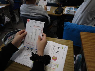 5年生、書写の学習で、用紙に対する文字の大きさや配列の学習で、年賀状を書く練習をしていました。残りひと月で、今年も終わってしまいますね、、、。