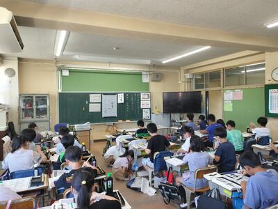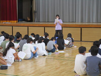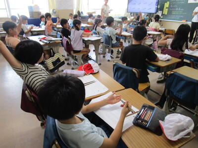 いろいろな学年が夏休みの自分の出来事を皆に伝える学習に取り組んでいました。