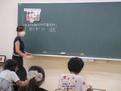 4年生、今月は算数の割り算の学習で、少人数教室と二つに分かれて授業を進めます。
