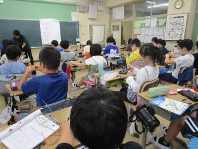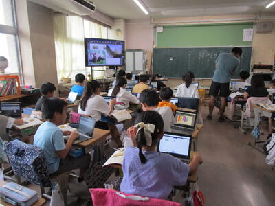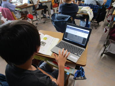 4年生、国語の「写真を見て感じたことや思ったことの話をする」という学習です。1枚の写真から事実を見つけ、そこから想像を膨らませ、自分の端末にメモ書きをしていました。どんな話ができるのか、楽しみです。