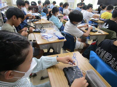 5年生、図工で「ワイヤードリーム」を制作していました。針金を曲げて、形を作っていきます。子どもたちは「ペンチを使ってうまく曲げるのは難しい」とつぶやきながらも、一人一人違ってるとてもおもしろい作品が出来上がっていました。