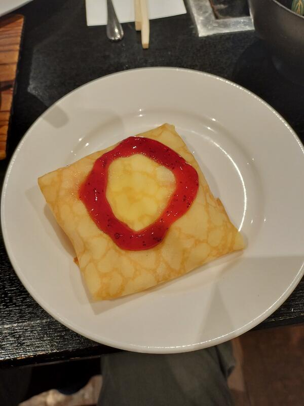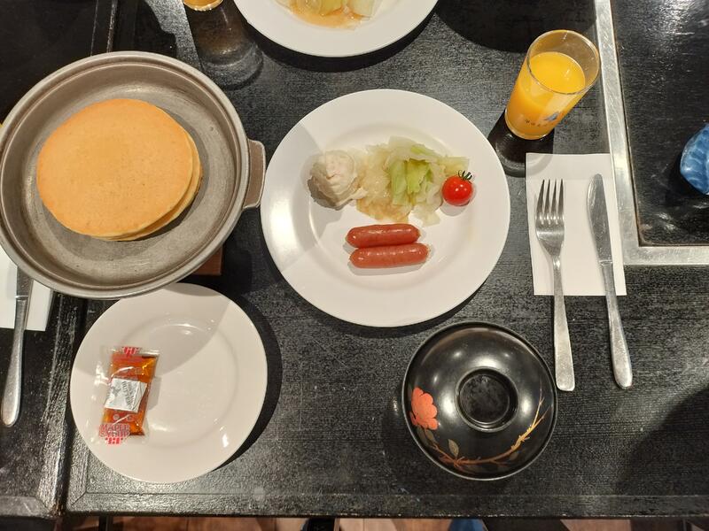 まずは元気に朝ごはんを食ベます。小西ホテルは修学旅行では少し珍しいパンケーキです。