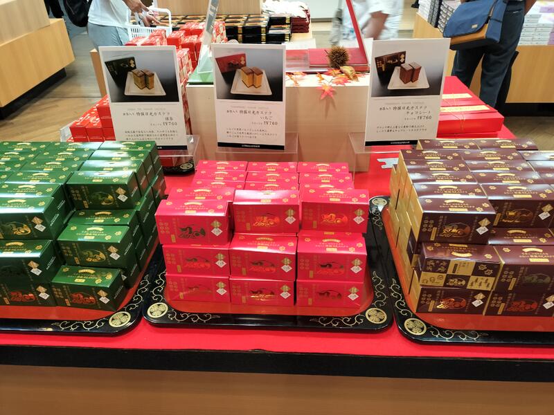 お土産を買って帰校します。磐梯日光店では、栃木県いちごを使ったお菓子や日光カステラが売っています。おうちの方楽しみにしていてください。