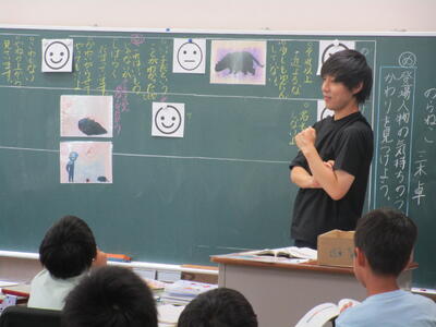 3年生、国語の「のらねこ」の学習で、登場人物の気持ちの変化を読み取っていました。子供たちの意見に合わせて、簡単な顔の表情を黒板に掲示してあります。見ただけで気持ちが変わったのがわかりますね。
