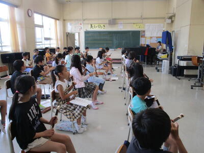 同じく、3年生の別のクラスがリコーダーの練習をしていました。リコーダーは、今年度配られたばかりなのに、ずいぶん上達していました。