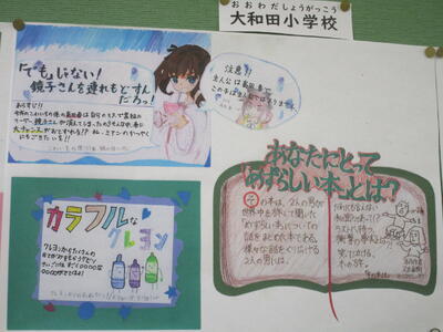 廊下に出ると、八中ブロックの4校(八中・鶴指小・平田小・大和田小)の図書委員の児童・生徒が書いた「おすすめの本」が掲示されていました。