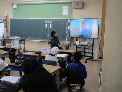 体育館で行われるはずの「冬休みを迎える会」ですが、インフルエンザによるお休みが少し多くなっているクラスがあったため、放送で行いました。冬休みの生活についてでは、5年生の子供たちからも生活上の注意がありました。教室を回るとよく聞いていました。表彰の時は、各クラス拍手をしたり喜んだりしていました。