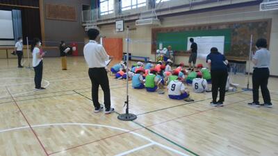 たくさんの先生に見守られていましたが、5年3組の子ども達は友達と協力しながらソフトバレーボールの作戦を考えていました。