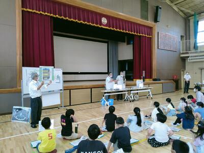 今日は4年生が社会科の学習の一環で水道に関する出前授業を受けました。