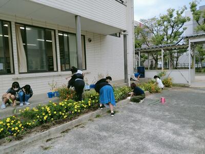 栽培委員会は、今日も「花ボランティア」の方々と一緒に花壇の整備をしました。特に、雑草抜きが大変でしたが、手際よく作業を進めていました。