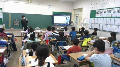 今日は、ICT支援員の訪問日ですので、3年〜6年までの各学級で、情報モラルの授業を実施しました。