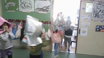 体育館がまっ暗になると、「わぁ、お化け屋敷みたい!」と子ども達はどきどきしたようです。