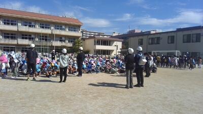 今年度4回目の避難訓練を実施しました。地震発生後、給食室での火災発生を想定した訓練です。