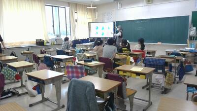 授業中の1年生も、そわそわして、時折、後ろを振り向く様子が見られました。