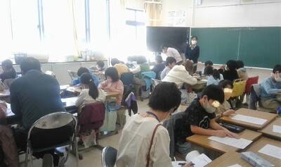 この講座は、市の事業の一つで、研修を積まれた地域支援者の方々が、小グループに1人ずつ入ってくださり、子ども達と一緒に事例について話し合うというものです。本日は、18名の方が来校し、各学級に6人ずつ入ってくださいました。