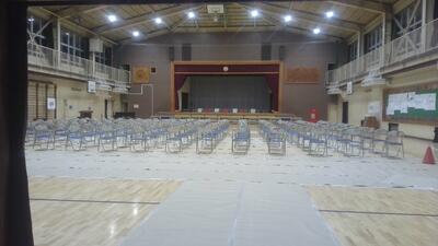 発表後は、体育館後方にある左右の出入り口から、退場していただきます。