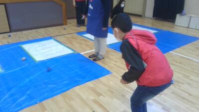 カーリングのコーナーもありました。勢いよく転がってしまい、中々高得点のところに止まりません。