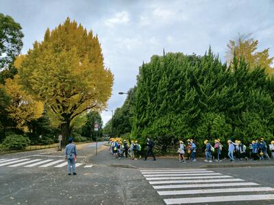 東京ゲートブリッジ、豊洲市場、オリンピック選手村、築地本願寺、歌舞伎座、皇居など、美しい紅葉と賑わう町の様子も併せて、子ども達は目と耳で多くを学んでいました。
