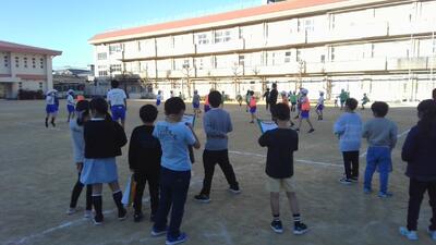今日は、次年度に向けて3年生がクラブ活動の見学をしました。1枚目は、ドッジボールクラブの活動を見学している様子です。初めは、遠慮がちに離れて見学していた3年生でしたが、楽しそうな雰囲気に引き寄せられるように、だんだんとコートのラインぎりぎりまで近づいていました。