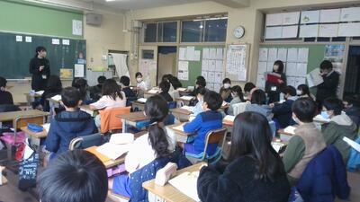 今日は4年3組で若年層研修による授業がありました。教科は道徳です。
