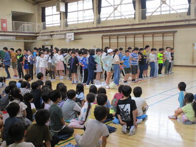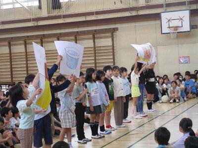 4月26日(金) 投稿日時 : 2024/04/26 編集長 「1年生を迎える会」が代表委員会の企画・準備・進行で行われました。「大和田小は楽しそうだな」と1年生に思ってもらうために、各学年ごとにテーマを決めて1年生に伝えました。2年生は「学習」3年生は「給食」4年生は「先生」5年生は「行事」6年生は「大和田小のルール」です。大きなイラストや文字、寸劇など、どの学年も工夫を凝らして素敵な発表をしていました。1年生も楽しみながら、「大和田小」のことがよく伝わったようです。
