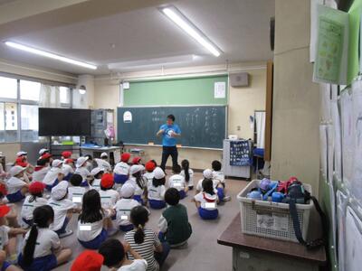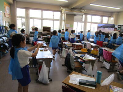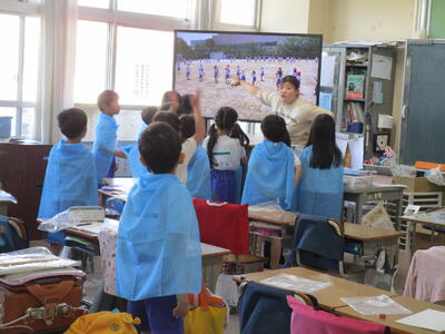 2年生、今日は雨のため、校庭での練習ができず教室で説明を聞いて、動画を見ながら練習していました。子供たちの覚えるスピードが速くて驚きました。